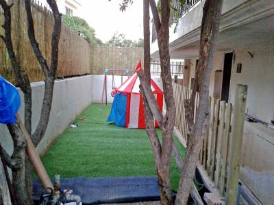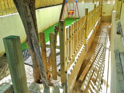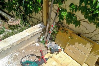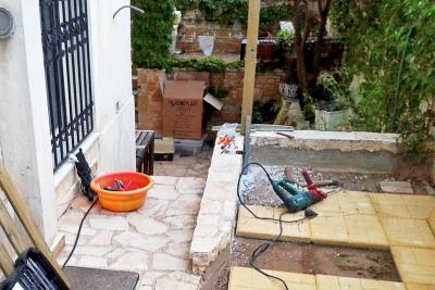Το τελευταίο καιρό ένα μεγάλο σχετικά project έτρεχε και τρέχει ακόμα δηλαδή. Μια αναβάθμιση της αυλής του σπιτιού, έτσι ώστε αυτή να γίνει baby friently ! Διότι ή είσαι παππούς ή δεν είσαι ! Έπρεπε να γίνει κάτι για να μπορεί η πιτσιρίκα που μας έχει πάρει το μυαλό ολονών, να παίζει χωρίς φόβο να γκρεμιστεί από πουθενά ! Η "αυλή" ουσιαστικά που θα τροποποιηθεί είναι δύο αλέες στενόμακρες, οι οποίες κάποιες φορές φυτεύονταν . . . και ήταν κάπως έτσι : Αλλά δυστυχώς λόγω του ότι πολύ η τρεχάλα και ο χρόνος λίγος , τον περισσότερο καιρό ήταν έτσι: Οπότε η απόφαση ελήφθη! Σε συνεργασία με το γαμπρό μου μπήκαν μπροστά τα έργα! Μετά από κάμποσο ψάξιμο που έκανε πήρε φράχτη από πεύκο και κολώνες από το ίδιο ξύλο. Σαν κατασκευή τίποτε το ιδιαίτερο αλλά σαφώς καλύτερο από ότι κυκλοφορούσε σε ανάλογη τιμή και μολονότι ελαφριά κατασκευή δεν είδα τίποτε διαλυτικές τάσεις! Ευτυχώς είχε δεί ότι τα στηρίγματα των κολονών ήταν κάπως ψεύτικα και από κατασκευής δεν μας βόλευαν , οπότε δεν πήραμε στηρίγματα, αντίθετα προτίμησα να κατασκευάσω εγώ κάποια που θα ήταν πολύ πιο βολικά στη στήριξή τους και κυρίως ασύγκριτα στιβαρότερα! Κοιλοδοκός λοιπόν γαλβανισμένος 30 χ 30 με 2mm πάχος ήταν η επιλογή και κόπηκε σε κομμάτια μήκους 43cm. Έφτιαξα και ένα "μετράδι" για να γίνουν όλα τα τρυπήματα στο ίδιο σημείο και αφού έγιναν οι τρύπες περάσαμε σε πιο εξοχικά μέρη για τη συνέχεια! Στιβαρότητα είναι η λέξη κλειδί, τουλάχιστον για τις κολώνες και τη στήριξή τους. Και αυτή φυσικά δεν έρχεται με βιδούλες -ειδικά αν είναι μόνο δύο! Θέλει στριφώνια ! Διάλεξα και λίγο φαρδιές ροδέλες και το "αρχαίο" Atlas Copco" (βλέπε AEG ) ανέλαβε να τις βάλει αυτές στη θέση τους και εμένα, να κάνω γυροβολιές τη πρώτη φορά που από αφηρημάδα δεν κοίταξα τη ροπή στην οποία είχα βάλει το κατσαβίδι! Βρέθηκαν και καπάκια για το φόβο των αναρίθμητων ποδιών του εξωαποδώ και οι κολώνες έγιναν έτσι : Και ήρθε η ώρα της στήριξης των κολονών . . . . . που να μην ερχόταν ! ! ! Εργαλείο το πολύ καλό πνευματικό του lidl (πάντα για τα λεφτά του και επιπλέον! ) Δυστυχώς και επειδή οι βίδες που βρήκα να συνοδεύον τα μεταλλικά ούπα της στήριξης ήταν κοντές, αποφάσισα (τι τό 'θελα ! ) να πάρω ούπα (no name) χωρίς βίδες και ξέχωρα βίδες (επίσης no name) στο κατάλληλο μήκος! Και καταλήξαμε στη δεξιά φωτογραφία ! ! ! ! Χρειάστηκε κάποια ούπα να τα περάσω με κολαούζο για να μπούν οι βίδες και το θέμα όπως θα δούμε στη συνέχεια δεν σταμάτησε εκεί ! (Δε το ξανακάνω, που να με δέρνουν δε το ξανακάνω ! ! ! ) Με τα πολλά (έως πάααρα πολλά ) το τμήμα αυτό του φράχτη άρχισε να στήνεται με τις κολόνες πρώτες και την σταδιακή προσθήκη του φράχτη που καθόριζε τη θέση της επόμενης κολόνας. Τουβλάκια για τον καθορισμός της απόστασης του φράχτη από το τοιχειάκι και ένα πηχάκι να καθορίζει μια ελάχιστη απόσταση τη κολόνας από αυτό για να μην έχουμε σαπίσματα ! Για τη στήριξη των τμημάτων του φράχτη χρησιμοποίησα γωνίτσες , που έδωσαν καλή στήριξη και δυνατότητα αποσυναρμολόγησης ενός κομματιού αν χρειαστεί! Στη δεξιά φωτογραφία φαίνεται μια πλήρως στηριγμένη κολόνα και τα εκατέρωθεν αυτής τμήματα του φράχτη. Το όλο σύστημα έγινε βράχος! Φυσικά ο φράχτης έχει μια αρκετά μεγάλη ελαστικότητα, αλλά αυτό δεν είναι κακό καθώς θα απορροφήσει τις ενδεχόμενες επιθέσεις -εκούσιες και μη- των πιτσιρικιών! Και με αυτά αργά το απόγευμα φτάσαμε εδώ . . . Μεταφέρθηκαν και τα πρώτα παιχνίδια της παιδικής