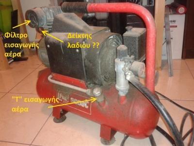 Ο αεροσυμπιεστής σου μπορεί να είναι παλιός αλλά αν δεν έει φθορές και δουλεύει δεν έχεις θέμα! Βλέπω ότι έχει και ρυθμιστή πίεσης ! Οπότε εκτός από ένα καλό καθάρισμα και μια αλλαγή φίλτρου αέρα και λαδιών που μπορεί να χρειάζεται κατά τα άλλα πρέπει να είσαι ετοιμοπόλεμος! Για τα ρακόρ: 1. Αν αυτό του ρυθμιστή πίεσης έχει στεγανότητα, δεν το πειράζεις (το πολύ πολύ να αλλάξεις μαι τσιμούχα (το λαστιχένιο ροδελάκι). 2. Στην άλλη άκρη του σωλήνα που θ α μπαίνει στο πιστόλι, καλό είναι να βάλεις ένα αυτόματο ρακόρ που έχει και βαλβίδα φραγής όταν δεν είναι το πιστόλι επάνω. 3. Προσέχεις το ρακόρ που θα πάρεις να ταιριάζει με αυτό που έχει το πιστόλι επάνω ! 4. Βασικό να δεις αν ο πρεσοστάτης σου δουλεύει καλά! 5.ΒΑΣΙΚΟ να δεις αν υπάρχει βαλβίδα ασφαλείας και αν αυτή δουλεύει! (καλό είναι να την αλλάξεις. 6. Κοίτα από την κάτω πλευρά του καζανιού για τυχόν σκουριές. 7. Αν έχεις να το δουλέψεις καιρό, ρύθμισε το πρεσοστάτη χαμηλά και κάνε δοκιμή να δείς αν σταματάει στη σωστή πίεση! Καλή συνέχεια! -