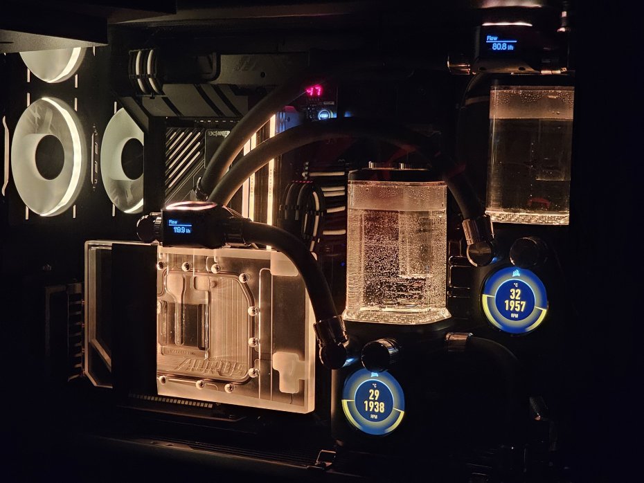 £3200 από Overclockers UK. Καραδοκούσα εδώ και καιρό, όποτε έβρισκα λίγο χρόνο, σε διάφορα μεγάλα μαγαζιά, ψάχνοντας το συγκεκριμένο μοντέλο. Κάποια στιγμή, απρόσμενα, φάνηκε in stock και το χτύπησα αμέσως, περιμένωντας να μου ακυρώσουν την παραγγελία λέγοντας ότι δεν έχουν stock. Τελικά ήρθε μετά από 2 μέρες. Παρά το γεγονός ότι το block της Alphacool στην Inno είναι μακράν ομορφότερο και υποψιάζομαι ότι θα έχει και δυνατότητα ελέγχου του RGB χωρίς την ανάγκη να τρέχεις συγκεκριμένο λογισμικό, όπως απαιτεί η Gigabyte, δεν είχα διαβάσει καλά πράγματα για την υλοποίσηση της Inno στην 4090, οπότε προτίομησα τη Gigabyte, που δίνει και 4 χρόνια εγγύηση.