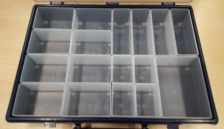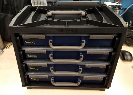 Είμαι φίλος της raaco, καθώς η βασική μου εργαλειοθήκη που είναι raaco δε με έχει απογοητεύσει καθόλου. Συνεπώς, όταν είδα προσφορούλα στα φοβερά αυτά συρταράκια, δεν είπα όχι... Το κουτί που περιέχει τα 4 βαλιτσάκια είναι stackable καθ ύψος και πλάτος, οπότε μπορείτε να φτιάξετε ολόκληρο τοίχο με βαλιτσάκια, αν το σηκώνει η τσέπη σας. Τα βαλιτσάκια έχουν διάφανο καπάκι για να βλέπουμε εύκολα τα περιεχόμενα και εύκολο και ασφαλές κλείσιμο. Είναι όλα γεμάτα με τα εξαιρετικά και διάφανα σκαφάκια της raaco. Τα 2 πάνω έρχονται με το εξής configuration: Ενώ τα 2 κάτω, με το εξής: Φυσικά, μπορείτε να τα χτίσετε όπως θέλετε. Από την εξωτική Ιαπωνία, ήρθε και ένα torsion bit holder της Vessel. Είναι τόσο λεπτό που αν δεν εμπιστευόμουν τη Vessel, θα έλεγα ότι δεν μπορεί να αντέχει μεγάλες ροπές. Μαζί και ένα διπλό bit. Ευπρόσδεκτο.- 2.258 απαντήσεις