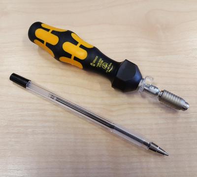 19. Wera 7435 ESD ροποκατσάβιδο με εύρος ροπών κατάλληλο για βίδες laptop. Παίρνει μύτες halfmoon και το πήρα για να το χρησιμοποιήσω με το σετ που παρέλαβα λίγες μέρες πριν. Αν μπλέξω με πολλά τάμπλετ και κινητά, θα κοιτάξω και σε κάτι με χαμηλότερη ροπή, αλλά προς το παρόν, τα μόνα ευαίσθητα με τα οποία ασχολούμαι σταθερά είναι τα laptops. Καθώς το σετ που είχα παραλάβει δεν περιλαμβάνει PH2, είπα να ψάξω για να το συμπληρώσω. Δε βρήκα κάτι σε ανοξείδωτο, αλλά προς ευχάριστή μου έκπληξη, βρήκα Halfmoon μύτες της Vessel! Made in Japan, φυσικά. Τελος, μια και οι τσίπηδες δεν το περιλαμβάνουν, ένα πορτοφολάκι για το ροποκατσάβιδο.