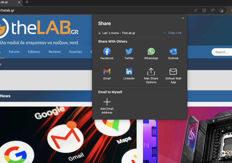 Υποθετω εισαι σε Microsoft Edge. Σε εμενα αν κανω δεξι κλικ καπου στην σελιδα εχει τις επιλογες για κοινοποιηση -