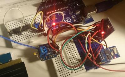 Δοκιμες IoT με arduino Το πανω ειναι ενα Arduino Uno με ενα αισθητηρα DS18B20. Ειναι συνδεδεμενο μεσω usb σε ενα RaspberryPi. Σε NodeJS τρεχει ενα script που με τη βοηθεια του Johnny5 διαβαζει την τιμη και την ανεβαζει σε μια Firebase (λογω SSL το Arduino απο μονο του δεν μπορει να το κανει). Εχω βαλει να δειχνει την εσωτερικη θερμοκρασια Το κατω ειναι ενα arduino mini pro που διαβαζει εξωτερικη θερμοκρασια μεσω ενος k-type αισθητηριου. Μετα με τη βοηθεια ενος Esp8266 Esp-01 το οποιο συνδεεται στο wifi ανεβαζει την τιμη στο thingspeak.com https://api.thingspeak.com/channels/50189/feeds.json?results=1 -