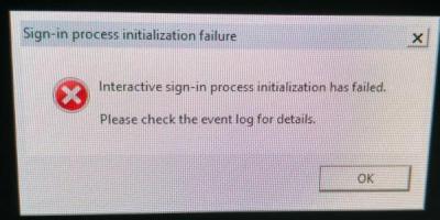 Στον υπολογιστή μου εχω windows 10 Pro με 2 χρήστες (microsoft synced και οι δυο). οταν κανω sign out για να μπω στον αλλον, λαμβανω το παρακατω μηνυμα και δε μπορω να κανω τιποτα, μονο hard reset. και sign in να κανω χωρις να βγω τελείως από τον προηγούμενο, πάλι το ίδιο σφάλμα. "interactive sign-in process initialization has failed" στο event log δεν βρηκα κατι (μαλλον) χρήσιμο. με λίγο ψαξιμο στο ιντερνετ ειδα αναφορές για το παραπανω σφαλμα σε κανονικό login -> επαναφορά του logonUI.exe κλπ, και δεν βοηθάνε. εχει τυχει σε κανέναν;;;