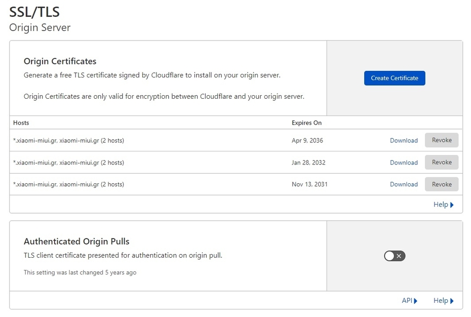4. Παιδιά, το πρόβλημα πρέπει να είναι από το SSL Certificate του Cloudflare. Στο SLL της Cloudflare επιλέξτε προς το παρόν Flexible για να μην έχετε προβλήματα. Επίσης εάν έχετε ενεργοποιήσει το Authenticated Origin Pulls καταργήστε το.....