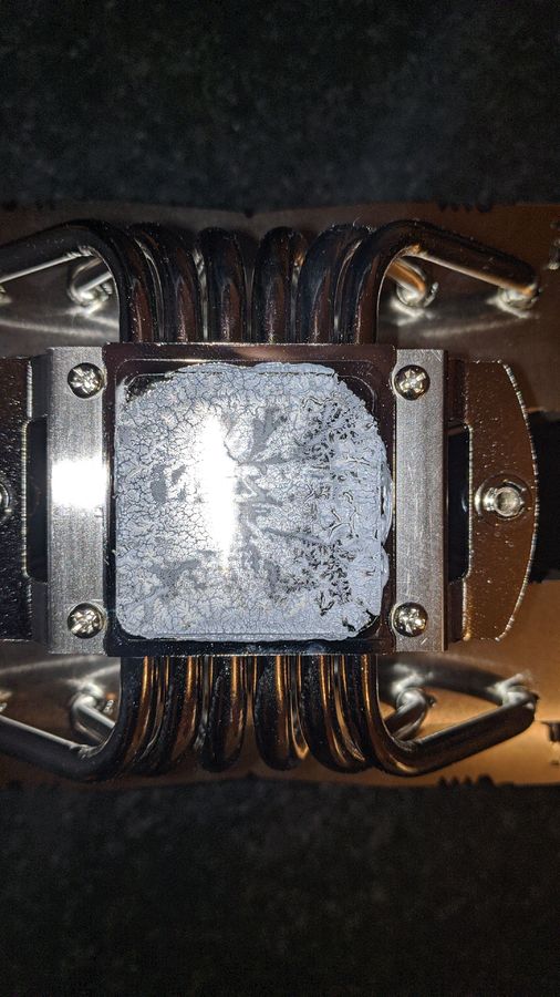 Αυτή που δίνει η noctua (NT-NH1 Thermal Paste). Το ελυσα και την ξαναέβαλα παλι αλλα δεν εχω καμια σοβαρη μεταβολη. Είναι -8C (72C full load δηλαδή) αλλα έιναι και πιο κρυο το σπιτι σήμερα. Οταν το έλυσα δεν φανηκε να είχε προβλημα επαφής (τουλαχιστον αύτο μου φαίνεται, σας βαζω και τις φωτό).