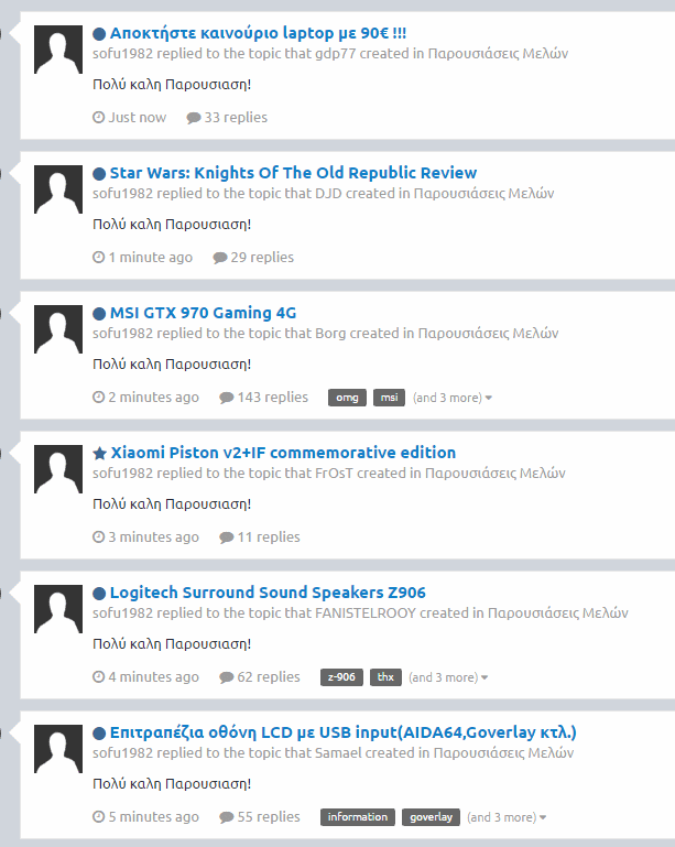 O "πρέπεινακάνωγρήγοραπολλάποστςγιαναμπορώναβάλωαγγελία" έχει ξεθάψει ότι βρει και γράφει το ίδιο μήνυμα παντού