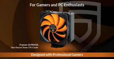 H Arctic ανακοίνωσε μια ακόμα ψύκτρα, το μοντέλο Freezer 33 PENTA, η οποία έχει ξεχωριστή εμφάνιση χάρη στο titanium black χρώμα της και τον 120 mm PENTA-style ανεμιστήρα της. Η εταιρία αναφέρει ότι ο σχεδιασμός της ψύκτρας έγινε σε συνεργασία με την γερμανική ομάδα eSports PENTA Sports. Τα σημαντικότερα χαρακτηριστικά της Freezer 33 PENTA είναι τα εξής: • PENTA style with titanium black heatsink • Compatible with Intel & AMD socket • Passive Operation up to 40 % PWM • Offset heat pipes ensure optimal heat dissipation • Anti-vibration rubbers for quiet operation Η Freezer 33 PENTA είναι διαθέσιμη μέσω του ARCTIC-Webshop στην προτεινόμενη τιμή των 45,99 €.