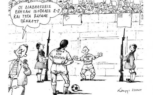 Λάθος. Η πόλωση του κλίματος έγινε επίτηδες για την περίπτωση αποτυχίας. Όλο αυτό το χρονικό διάστημα η ρητορική των κακών θεσμών και των πουλημένων γερμανοτσολιάδων του εσωτερικού, είχε σκοπό την κατασκευή του κακού δράκου, ο οποίος θα ήταν ο υπεύθυνος για την αποτυχία της συμφωνίας και της οικονομικής καταστροφής που αυτή θα έφερνε. Αμ τα βουλευτικά αμάξια; Θα μπορούσαν να ξεκίναγαν από εκεί. Όσο για τις καθαρίστριες, την οικονομική σωτηρία της ΓΕΝΟΠ και την ΕΡΤ, πόσοι εργαζόμενοι στον ιδιωτικό τομέα απολύθηκαν λόγω της αβεβαιότητας των τελευταίων έξι μηνών; Όσο οι καθαρίστριες το γιόρταζαν, κόσμος έχανε την δουλειά του αποκλειστικά και μόνο λόγω της αβεβαιότητας.