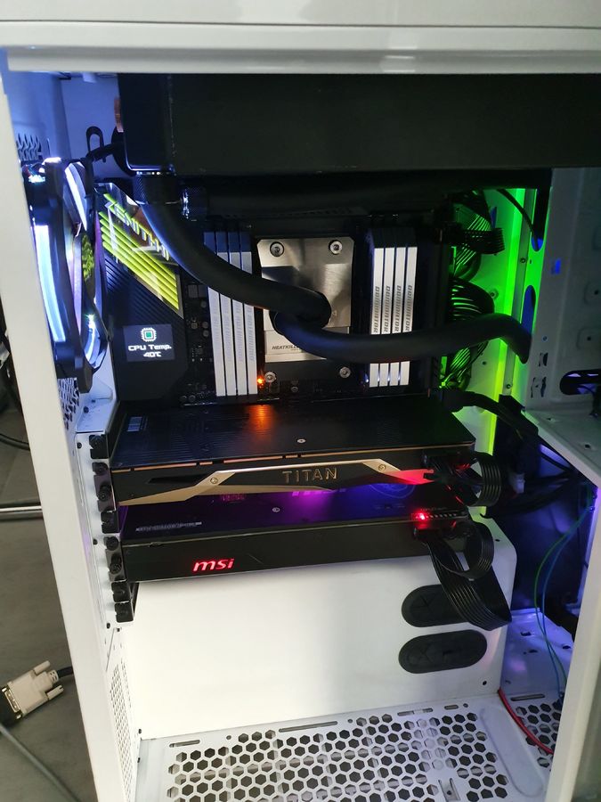 Το νέο workstation. AMD 3970x + Asus Zenith 2 Extreme + 128GB Corsair Dominator + 4x 2TB Corsair MP600 + Nvidia Titan V + MSI Vega 56 + Corsair HXi 1200 + Phanteks Enthoo Primo White + Thermatake Riing 12 RGB + Watercool Heatkiller IV + Alphacool UT60 360 + D5 w Heatkiller Tube + Aquaero 6 XT Περιμένοντας ένα 360 radiator ακόμη.