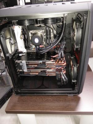 Swiftech Apogee Drive II + Laing DDC 18w + Alphacool Nexxoss UT60 360 rad + Bitspower 80 multi-tank και προσφατα παρελαβα 3x EK Vardar F3 fans για να αντικαταστησω τα πολυ αξιοπιστα Yate Loon D12SH-12 επειδη θελω να μειωσω το θορυβο.
