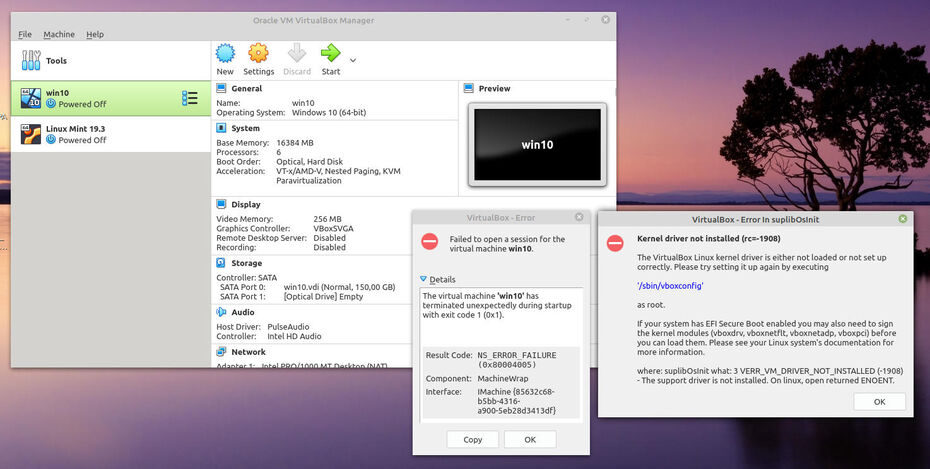 Έχει γίνει... Ούτε με το "μαμά" virualbox από τo mint software center, ούτε και με το τελευταίο 6.1.18 από το official site. To θέμα είναι υπαρκτό και αντί να κάτσουν να το λύσουν τσακώνονται αν φταίει ο Kernel ή το virtualbox. Εκτός αν εννοείς να ξαναστήσω το VM με τον kernel που χρησιμοποιώ....