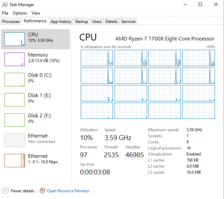 Εννοώ το ποσοστό χρήσης cpu (κυρίως) που βλέπεις την ώρα που έχεις ανοιχτά 3-4 tabs στον browser σε sites σαν το thelab ή και πιο βαριά π.χ. gazzeta.gr . Το ποσοστό χρήστης το βλέπεις στα win10 πατώντας ctrl+shift+esc οπότε θα δεις κάτι τέτοιο: Μπορείς να μας πεις τι ποσοστά χρήσης βλέπεις; (Στο ubuntu -εφόσον δεν έχεις ρυθμίσει αντίστοιχο shortcut- βλέπεις αντίστοιχα ποσοστά τρέχοντας το system monitor)