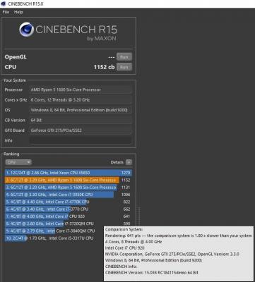 Νέο cinebench με τις μνήμες @ 2933 και επεξεργαστής default. (Το σύστημα κέρδισε +21 cb από τις μνήμες @ 2933) O 920 @ 4GHz είναι x1.8 πιο αργός σύμφωνα με την ένδειξη του cinebench. Λογικά μόλις κάνω και oc το cpu θα πλησιάσω ή και θα ξεπεράσω το 200% των επιδόσεων του 920 @ 4GHz (multithreading)