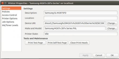 update 1/6/15... Αφού αφαιρέθηκε ο γυψονάρθηκας από ένα διάστρεμμα που με ταλαιπώρησε εδώ και 2 βδομάδες, αγοράστηκε και UTP καλώδιο, ώστε να συνδεθεί στο δίκτυο. Στα υπόλοιπα μηχανήματα του σπιτιού λοιπόν ο εκτυπωτής εγκαταστάθηκε δικτυακά. Αρχικά συνέδεσα τον εκτυπωτή στο router και από 'κει και πέρα η εγκατάσταση ήταν απλούστατη. Απλά φροντίζεις να είναι ανοικτός ο εκτυπωτής, συνδεδεμένος στο router, εκτελείς το πρόγραμμα εγκατάστασης από τον υπολογιστή, επιλέγεις network installation και ξεμπέρδεψες. Εγκατάσταση δοκιμάστηκε και με μηχάνημα που ήταν ενσύρματα στο δίκτυο και ασύρματα (wifi), εξίσου απροβλημάτιστα. Για κάποιους που ρωτούσαν πιο πάνω, δεν είναι ανάγκη να δώσεις καρφωτές ip στον εκτυπωτή, παίζει κανονικά και με DHCP (σε αυτή την περίπτωση δεν σετάρεται με την ip, αλλά με το port του εκτυπωτή - όλα γίνονται αυτόματα). Το ίδιο απροβλημάτιστη η εγκατάσταση και σε linux. Σε ubuntu που το δοκίμασα, απλά κατεβάζεις τον driver από το site της samsung, τρέχεις το install.sh και έχεις έτοιμο τον εκτυπωτή προς χρήση. Μάλιστα η εγκατάσταση έγινε και δικτυακά. Ένα επιπλέον βήμα που πρέπει να γίνει αν θέλεις να τυπώνεις μπρος πίσω είναι να προσθέσεις τον εκτυπωτή μέσω της εφαρμογής "printers" (από control panel), κάτι που δεν περιγράφεται στο manual της samsung. Ακολουθούν ss από τις δυνατότητες των οδηγών σε linux: Ο εκτυπωτής διαθέτει και ένα χρησιμότατο web panel στο οποίο έχεις πρόσβαση απλά πληκτρολογώντας το ip του ston browser ή κατεβάζοντας την αντίστοιχη εφαρμογή από την samsung. Τέλος εγκαταστάθηκε και το samsung mobile print από το google play στο κινητό, βρήκε τον εκτυπωτή αυτόματα και εκτύπωσε χωρίς κανένα πρόβλημα. Ίσως το μεγαλύτερο μείον του εκτυπωτή είναι το on-line manual της samsung. Πραγματικά οι άνθρωποι που το έγραψαν πρέπει να έχουν νοητικό πρόβλημα ή κάτι παρόμοιο. Σχεδόν σε κάθε παράγραφο είναι ασαφές και προκαλεί απορίες. Για παράδειγμα να αναφέρω ότι στην δικτυακή εγκατάσταση του εκτυπωτή αναφέρει ως υποχρεωτικό βήμα ότι πρώτα πρέπει να κατεβάσεις, να εγκαταστήσεις και να τρέξεις την εφαρμογή SetIp από την samsung, ώστε να βρεις την ip και την mac address του εκτυπωτή. 1) Δεν χρειάζεται, διότι τα βρίσκεις και από τον network manager. 2) Τα στοιχεία αυτά δεν ζητούνται σε κανένα σημείο της εγκατάστασης των οδηγών. Πιθανότατα το setip να είναι απαραίτητο αν θέλεις να δώσεις καρφωτή ip στον εκτυπωτή, αλλά αυτό δεν αναφέρεται πουθενά στο manual. Η ίδια ασάφεια υπάρχει και σε πολλά άλλα σημεία του manual και πραγματικά αναρωτιέμαι αν έχει προκαλέσει σε μένα τόσες απορίες (που τελικά λύνονται με trial and error), τι θα γίνει με έναν άπειρο χρήστη. -