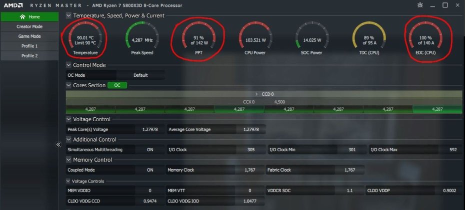 Ξεκολλήστε με τα vrm είμαι με αρχαία B350 mobo (4 phase αν θυμάμαι καλά) και χτυπάω υψηλότερα ρολόγια από εσάς. (+αέρα + τραγική μνήμη ). Κάποια settings στο ΒΙΟS θέλουν fine tuning.