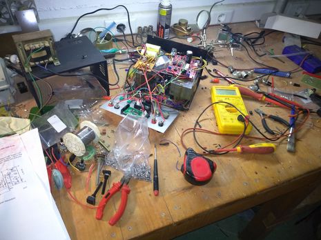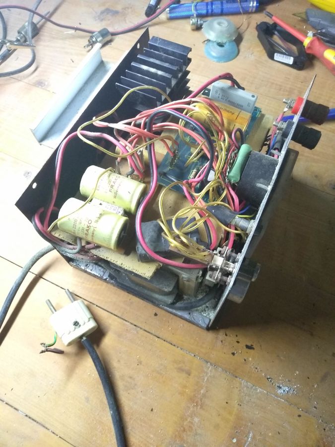 Χαίρετε και χρόνια πολλά. Όπως είχα προαναγγείλει, ''τρωγόμουν με τα ρούχα μου'', και έτσι βρήκα το ‘’θύμα’’…: Τροφοδοτικό φτιαγμένο την εποχή που υπήρχε άπλετος χρόνος, αλλά όχι άπλετο χρήμα. Με κουτί & αμπερόμετρο ‘’χορηγία’’ (από τα ‘’προς ανακύκλωση’’ ενός εργαστηρίου στη γειτονιά μου) και τα λοιπά ένα κιτ της γνωστής -τότε- εταιρίας 3 – 30 v /3 A τα οποία αγοράστηκαν με αιματηρές οικονομίες. Στην πορεία προστέθηκε και άλλος ένας σταθεροποιητής (LM338K) όταν βρέθηκε (πάλι από χορηγία) ακόμα ένας μετασχηματιστής. Η εικόνα στα ‘’ενδότερα’’….: Χάος…. Πλην όμως όλα αυτά τα χρόνια (περίπου 27) είχε αποδειχθεί ‘’σκυλί μαύρο του πολέμου’’. Περνώντας όμως σε νέα εποχή, τα γνωστά από τότε προβλήματα του, σχετιζόμενα με την ακρίβεια απεικόνισης, και ρύθμισης της επιθυμητής τάσης, σε συνδυασμό με την πληθώρα των ηλεκτρονικών που μπορεί κανένας να βρει πάμφθηνα, με οδήγησαν στην απόφαση της ανακαίνισης. Και τότε άρχισαν τα ωραία…. Η αρχική μου σκέψη ήταν η προμήθεια ενός πολύ διαδεδομένου κιτ το οποίο θα αντικαθιστούσε το παλιό, και είχε ρύθμιση από 0 volt αλλά και ρύθμιση ρεύματος, και στο κουτί θα φιλοξενούταν εντελώς ανεξάρτητο πλέον και το τροφοδοτικό με το LM338K φτιάχνοντας ένα διπλό τροφοδοτικό, και τα όργανα θα αλλάζονταν με τα (πάμφθηνα πλέον) ψηφιακά διπλής απεικόνισης. Έτσι έλεγα…….. Ξεκίνησα λοιπόν με γενική αποξήλωση φτιάχνοντας μια πιο σωστή βάση για τις πλακέτες: Αριστερά, βλέπουμε τμήμα της πλακέτας με τα ελάχιστα εξαρτήματα που απαιτεί το LM338K για να λειτουργήσει, και δεξιά βλέπουμε τμήμα της νέας πλακέτας. Τα πράγματα πήγαιναν καλά … Στο πάτωμα τοποθετήθηκε ένα πλακετάκι, που έδινε σταθεροποιημένα 12 v για την τροφοδοσία των οργάνων. Στηρίχθηκε η μια πλακέτα…: Στηρίχθηκε και η άλλη (μου λείπει η φωτό, αλλά θα φανεί αργότερα), Στηρίξαμε και τα όργανα σε φύλο αλουμινίου (κόπηκε νέα πρόσοψη): Μονταρίστηκαν όλα μαζί, το βάλαμε μπροστά, και……. Τζίφοοοος…….. Τι έχουμε? Το παλιό τροφοδοτικό με το LM338K λειτουργούσε μια χαρά, τα οργανάκια ανάβανε μια χαρά, ΑΛΛΑ το νέο τροφοδοτικό, δεν έδινε τίποτα. ‘’Κάνε μας τέτοια κάνε μας κι άλλα…. ‘’ Μετά τις ήρεμες στιγμές περίσκεψης και προσευχής (not) πιάσαμε την αγαπημένη μας ενασχόληση: Διάβασμα. Έγινε ο σχετικός (τρις) έλεγχος ότι δεν είχα παραλείψει / μπερδέψει κάτι, και η κατάσταση έφτασε περίπου σε αυτή την εικόνα: Μετά από κάμποσες ωρίτσες ανακάλυψα (ο νέος Κολόμβος –τρομάρα μου-) ότι το συγκεκριμένο τροφοδοτικό βρίθει σχεδιαστικών σφαλμάτων, και υπάρχει πολυσέλιδος οδηγός για τις απαραίτητες βελτιώσεις, οι οποίες μετά από αξιολόγηση, κατέληξα ότι θα κόστιζαν υπερπολαπλάσια του χρόνου και του κόστους (τιμή κιτ ~ 5€) που είχα αρχικά σχεδιάσει να δαπανήσω. Και εκεί επήλθε ‘’αλλαγή πλεύσης’’…. Στο ιντερνέτ, κυκλοφορούν πλέον δεκάδες οδηγοί μετατροπής ενός κοινού ΑΤΧ τροφοδοτικού σε τροφοδοτικό πάγκου. Ξεκίνησα λοιπόν από το μηδέν με ένα τροφοδοτικό που είχα από αμνημονεύτων ετών. Κουτί όμως ?? το υφιστάμενο δεν χώραγε τα σωθικά επομένως έπρεπε να βρεθεί κάτι άλλο. Μια γρήγορη βόλτα στην αγορά, απομάκρυνε το ενδεχόμενο αγοράς νέου κουτιού, καθώς το κόστος του θα υπερέβαινε την αγορά ενός κανονικού τροφοδοτικού πάγκου, άρα αποκλείστηκε η ιδέα. Θυμήθηκα όμως κάτι άλλο: Αυτό ήταν ο θάλαμος έκθεσης για τις φωτοευαίσθητες πλακέτες, ο οποίος όμως δεν με ενθουσίασε εξ αρχής για τις δυνατότητες του (ανισ
