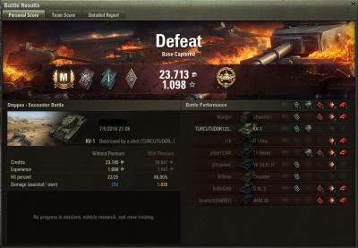 Επιτέλους Μ !! .....βέβαια, δυστυχώς χάσαμε δίοτι είχαμε μείνει με 1 birch gun και 1 Pz IC με 1/3 hp και οι άλλοι με 1 KV1 με 30 hit points και ενώ το Pz τον σποταρε συνέχεια, το birch αμόλαγε χαρταετό... μια πήγαινε προς τη βάση (για να είναι ποιο κοντά ?) μια σταμάταγε. Ο άλλος ξαφνικά βαρέθηκε (?) και εφορμά, το KV1 τον καθαρίζει σαν αυγό, και φυσικά, όταν πλησίασε το birch έφαγε 2 έριξε 1 στο γάμο του καραγκίοζη, και χααααάσααααμε ....