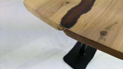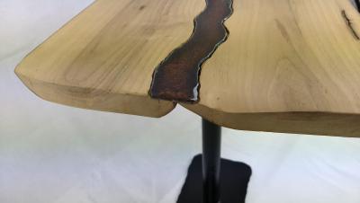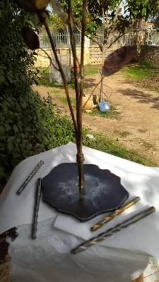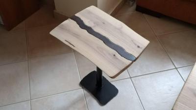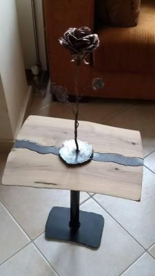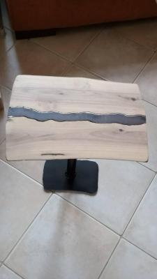 Τραπεζάκι (40x30 εκ, περιπου 40 πόντους ύψος) από 2 φέτες καρύδιας (ρεταλια) . Στη μέση λαμαρίνα (καλύπτει στην ουσία το κενό), σκουριασμενη φυσικά. Πόδι σιδερένιο, βαμμένο μαύρο.- 2.882 απαντήσεις