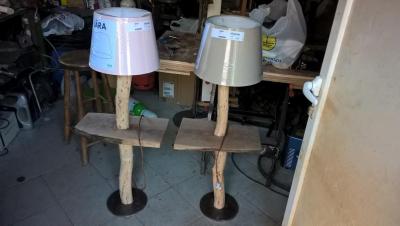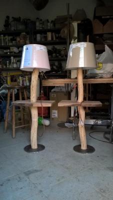 Λοιπόν, σε συνέχεια της βάσης για τα εργαλεία από το τζάκι τα υπόλοιπα κομμάτια από το πουρνάρι, αξιοποιήθηκαν (νομίζω...) ως πορτατίφ για το υπνοδωμάτιο... Στη μέση υπάρχει φύλλο καρυδιάς (περίπου 3εκ. πάχος). Ο κορμός αποτελείται από 2 κομμάτια (δεν είναι μονοκόμματος δηλ). Ο διακόπτης του ρεύματος βρίσκεται "φυτεμένος" στο κάτω μέρος της καρυδιάς, ενώ το πουρνάρι στο πίσω του μέρος σκάφτηκε με το ρούτερ για να χωθεί το καλώδιο του ρεύματος. Λάμπες έχω βάλει edison (τις "στρογγυλές" που λέμε, φ95 νομίζω) και το καλώδιο είναι "πλεκτό" απέξω. Η βάση κάτω είναι χοντρή λαμαρίνα (8χιλ.) Μπόλικη δουλειά (και δεν του φαινόταν...) αλλά το αποτέλεσμα ΜΟΥ αρέσει!!!! Υ.Γ.1 Τα αμπαζούρ από το ΙΚΕΑ, κόστος κανά 10αρικο το καθένα Υ.Γ.2 Θα μπορούσε να χρησιμοποιηθεί και ελιά (ωραία νερά, πιο ελαφρύ από το πουρνάρι) Υ.Γ.3 Δεν έχει περισσέψει άλλο κομμάτι από το πουρνάρι............................ -