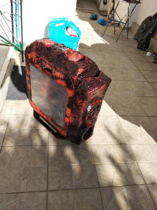 Αφρό πολυουρεθάνης, πολυεστέρα σιδηρόστοκο και πολυεστέρα με ίνες Δεν περίμενα να άρεσε σε όλους, εξάλλου δεν συνηθίζω να ακολουθώ την πεπατημένη του case modding, θέλω να κάνω κάτι δικό μου γι'αυτό και βλέπεις τέτοιο στυλ από μένα, όπως το half life 2. Να σου πω κάτι όμως; Κάνω αυτό που αγαπάω και μαρεσει, αν ήταν έτσι θα δίσταζα να εκτεθω στο ελληνικό κοινό και εκτός αυτού χρησιμοποιώ υλικά και τεχνικές που ξέρω. Αυτά τα ολίγα.