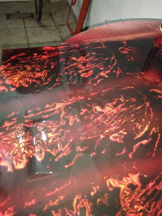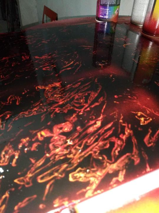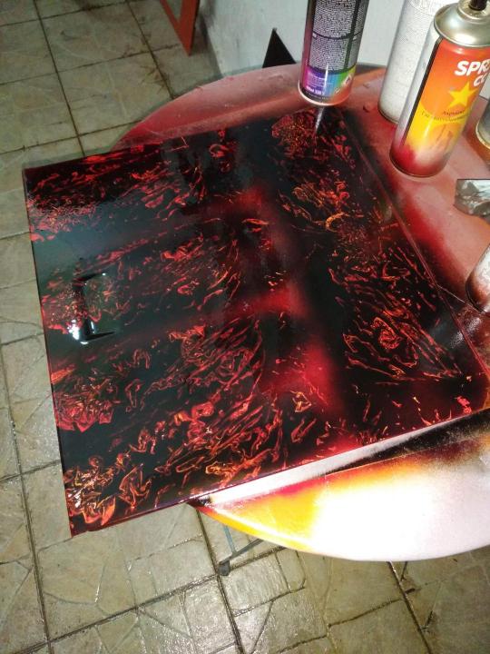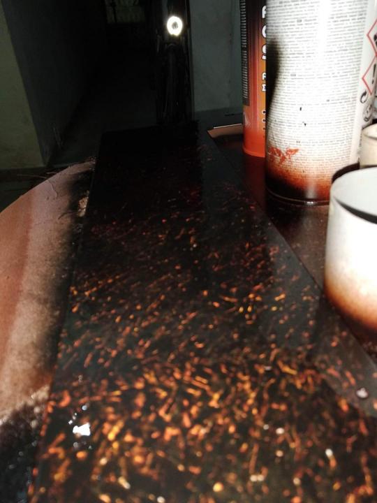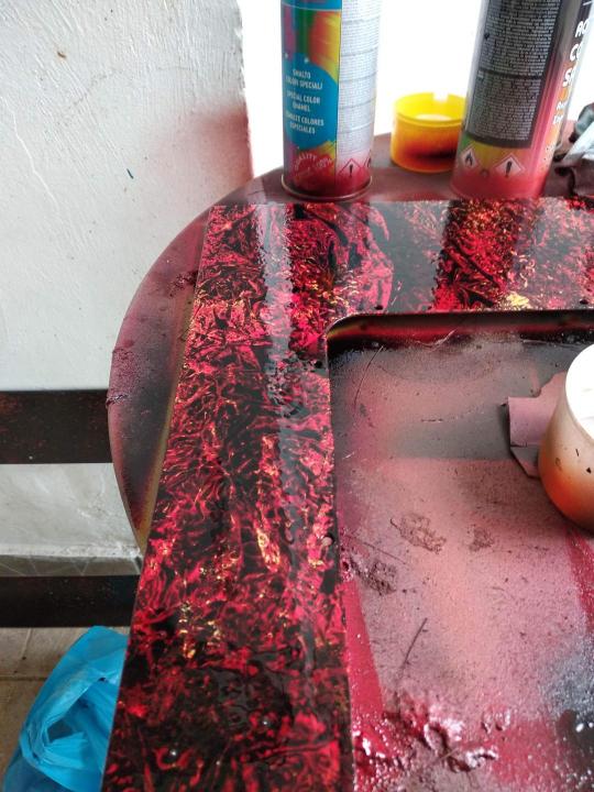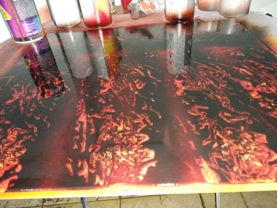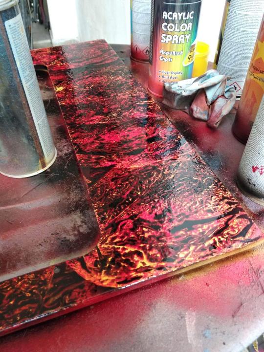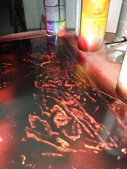 Καλημέρα σας φίλοι μου, θέλω να μοιραστώ κάτι μαζί σας σχετικά με αυτήν την τεχνική. Όταν θέλετε να κάνετε αυτή την τεχνική σε διχρωμία ας πούμε, φροντιστε το βασικό χρώμα να έχει στεγνώσει τελείως γιατί το τελικό χρώμα η το πάνω χρώμα έχει την τάση να υγραίνει το βασικό χρώμα η το αμέσως προηγούμενο λόγω των διαλυτικων που έχει μέσα, γι'αυτό προσοχή έτσι όπως βαφετε. Σημείωση: Προτείνω σαν βασικό χρώμα να χρησιμοποιείτε χρώμα αυτοκινητου. Είναι ότι καλύτερο σε ποιότητα που μπορείτε να βάλετε στο πρότζεκτ σας....και δεν σκάει τόσο εύκολα αν θέλετε να κάνετε την τεχνική με παραπάνω από δύο χρώματα....αυτά για την ώρα.... until next time! -