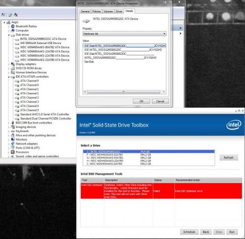 Intel SSDFonias A.E1416003211 απάντησε στο θέμα του angel_f topic στην ενότητα Συσκευές Αποθήκευσης ρε παιδια τι παιζει με τον δικο μου Postville? Τα νουμερα μου απο crystaldiskmark εχουν πεσει απο 1-6mb κατω σε σχεση με οταν τον πρωτοπηρα με ιντελ οδηγους και με το παλιοτερο firmware. Χτες αποφασισαν να ενεργοποιησω το trim και να κανω κ ενα formatακι που το χρειαζοταν αλλωστε. Κανω firmware update--->ολα οκ. Κανω εγκατασταση Win 7 x64--->ολα οκ. Κανω εγκατασταση συσκευων κ αφηνω τους intel drivers απ εξω. Ανοιγω το toolbox να δω αν υποστηριζεται το trim και στο word 169 μου βγαζει 1 οποτε ειναι ενεργοποιημενο.(απ οτι διαβασα) Τρεχω crystaldiskmark και τα νουμερα ειναι ελαφρως πεσμενα. Καλα οχι τρελες διαφορες, δεν με νοιαζει και τοσο. Το θεμα ειναι οτι τρεχω το optimizer απο το toolbox και μου βγαζει αυτο: Οταν δουλευει το τριμ δεν δουλευει το optimize??? Δε νομιζω να παιζει κατι τετοιο.Οπως φαινεται απο πανω εχω win7 x64 με ahci ms drivers και το firmware ειναι το 02HD. Δεν θα πρεπε να δουλευει το optimize?