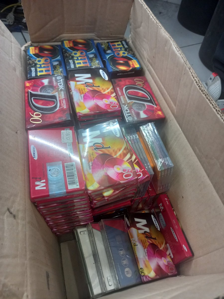 12. Χαρίζεται κουτίτσα σχεδόν γεμάτη με σφραγισμένα τα εξής: κασέτες ήχου, κάποιες hi8, κάτι μικρά cdr και κάποια mini disc. Παραλαβή από Κάτω Πατήσια (100 μέτρα από σταθμό ηλεκτρικού) ώρες καταστημάτων, κατά προτίμηση εντός της εβδομάδας γιατί μετά θα πάνε ανακύκλωση. Επισυνάπτω φωτογραφία: