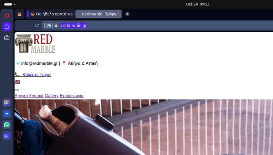 Κάνοντας κλικ στο λινκ που έχεις βάλει, έρχομαι εδώ. Για κάποιο λόγο που δεν έψαξα, "χάνεται" κάποιο css. Κάνοντας κλικ στο λογότυπο, με πάει στην κανονική σελίδα. Στην οποία, το λογότυπο χρειάζεται πλήρη αναθεώρηση - το λέω ευγενικά. Η αισθητική του ανήκει στην εποχή των Windows 98 - και επιπλέον, οι πρόγονοί μας ποτέ δεν έφτιαξαν κιονόκρανα με ψηλόλιγνη σπείρα. Αν όμως, επ' αυτού ο πελάτης είναι άτεγκτος, τότε το λογότυπο είναι απολύτως καταπληκτικότατο. Πρέπει όμως να στοιχιστεί αριστερά. Η αλλαγή γλώσσας είναι χαμένη στα δεξιά, θέλει συμμάζεμα στη navbar. Το floating button του whatsapp ταιριάζει σε καφέ ντελίβερυ, αλλά όχι εδώ. Αν όμως επιμένει ο πελάτης, είναι επίσης απολύτως καταπληκτικότατο. Αφού υπάρχει φόρμα επικοινωνίας, δεν ξέρω για ποιο λόγο υπάρχει ορατό email. Η καρφίτσα έχει λόγο ύπαρξης, αν οδηγεί σε χάρτη. Το breadcrumb πρέπει να είναι πάντοτε ανεπτυγμένο οριζόντια. -