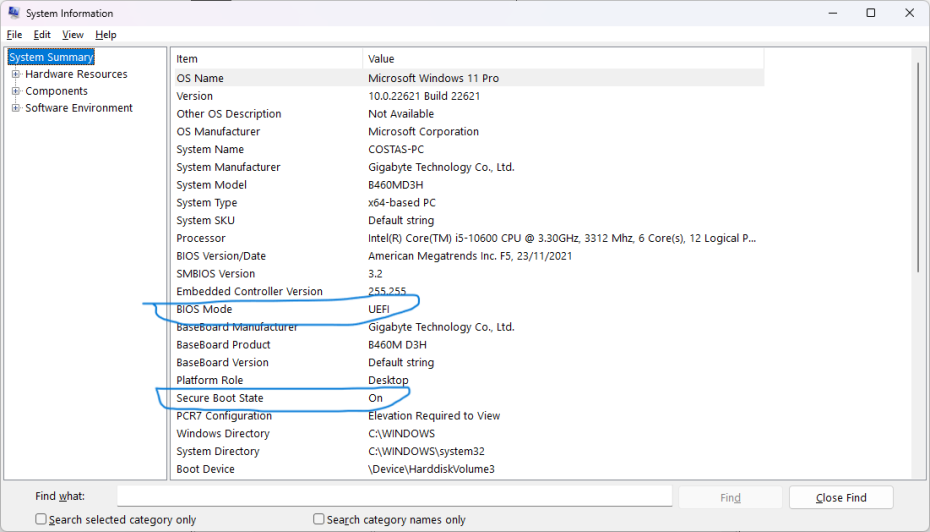 24. Ο δίσκος σου είναι φορμαρισμένος ως MBR ή GPT; Αυτό μπορείς να το ελέγξεις ακολουθώντας αυτές τις οδηγίες. Αν είναι ήδη GPT, τα πράγματα είναι εύκολα. Αν είναι MBR, είναι λιγώτερο εύκολα. Επίσης, ακολουθώντας αυτές τις οδηγίες, άνοιξε το system info και τσέκαρε πώς εκκινεί το σύστημα βλέποντας αυτές τις δύο ενδείξεις.