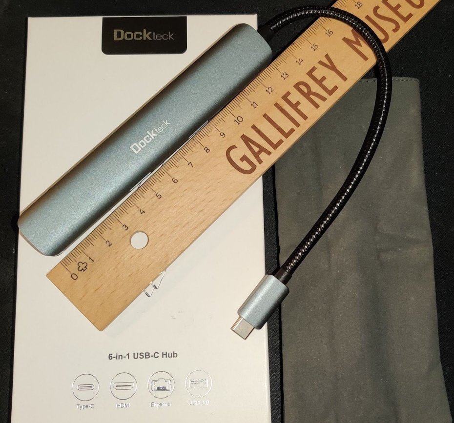 Dockteck 6-in-1 USB-C Πολύ καλή μεταλλική κατασκευή με καλώδιο με περίβλημα. Λίγο πιο μεγάλο απ' ότι περίμενα αλλά λειτουργεί μια χαρά σε OnePlus και Samsung κινητά. Επίσης σε Windows. Δεν το έχω δοκιμάσει ακόμα σε Linux.