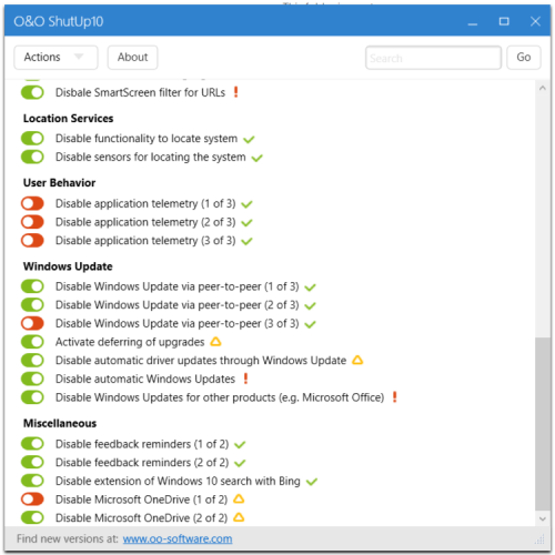 Ενδιαφέρον utility που πέτυχα τυχαίως και έχει μαζεμένα όλα τα privacy settings κλπ. O&O ShutUp10