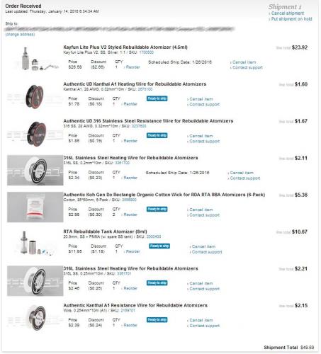 @nickpoth στην χειρότερη μήνα. Εμένα απο fasttech εφτασε πακετο (μέσα στισ γιορτές) σε 10 μέρες. Θέλω βοήθεια για την αγορά του κλώνου (https://www.fasttech.com/products/1700500) από fasttech. Βασικά τι συρματα να παραγγείλω τι βαμβακια και τι άλλο χρειάζεται κτλ. πχ https://www.fasttech.com/products/3237600 kai https://www.fasttech.com/products/3361700 (για vw & tc) και πιο Kanthal ?? Βαμβάκια ??? ποια ? Λέω να πάρω και ένα https://www.fasttech.com/products/3029400 Για βοηθήστε να στήσω το καλάθι plz