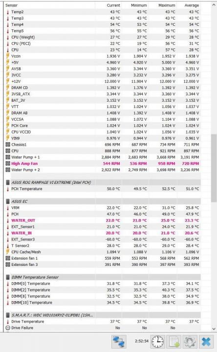Δυστυχώς είναι διαφορετικές οι ρυθμίσεις της Gigabyte σε σχέση με την Asus και δεν τις ξέρω καθόλου. Ψάξε στο BIOS για ρυθμίσεις σχετικές με "power limits" ή κάτι ανάλογο σε CPU / VRMs...μπορείς να τις κρατάει στοκ και να θέλουν ανέβασμα..Αυτό που αναφέρεις ως CPU VCORE CURRENT PROTECTION μπορεί να είναι αυτό που λέω... Για το mech ratio μάλλον εννοείς "mesh ratio" και έχει να κάνει με την ταχύτητα της CACHE του επεξεργαστή. Εγώ το έχω στο 30 αλλά και αυτό θα το ανεβάσεις αργότερα. Γενικά πάνω από 32Χ στους Skylake-X δεν έχει και πολύ νόημα αλλά από 24-30 έχει. Εκεί τα ρεύματα ρυθμίζονται από αλλού αλλά το αφήνεις για μετά που θα έχεις σταθεροποιήσει τα ρολόγια. Επίσης κοίταξε τα thermal protections ή ανάλογες ρυθμίσεις μήπως σβήνουν αυτά το PC... Μπορείς να δεις θερμοκρασίες VRM στο HWINFO64? Αν υπάρχει αισθητήρας στο motherboard βέβαια. Π.χ. εγώ το βλέπω έτσι (δες screenshot) -