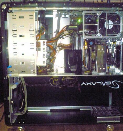 Εγώ πάντως στο v2000 πήρα τους δίσκους από κάτω και τους έβαλα πάνω με ένα μαραφέτι τις Lian-Li που πιάνει 3 θέσεις 5 1/4 έχει μπροστά έναν 12άρι ανεμιστήρα και παίρνει 4 δίσκους. Έτσι βάζοντας και το Galaxy στην πάνω μεριά έχω όλο τον κάτω χώρο άδειο για την επερχόμενη υδρόψυξη. Εδώ θέλω να τονίσω πως υπάρχει μια λαλακία στο πισινό πλακάκι που βιδώνει πάνω το τροφοδοτικό και αυτό με τη σειρά του βιδώνει πάνω στο σασί. Αν θες να βάλεις το τροφοδοτικό όπως το έβαλα εγώ και πας να το βάλεις κανονικά όπως είναι οι τρύπες που βιδώνουν το πλακάκι με το τροφοδοτικό τότε το τροφοδοτικό μπαίνει ανάποδα!!! και εξηγώ. Επειδή το Galaxy έχει στην κάτω μεριά του έναν 12άρι ανεμιστήρα τότε αυτός ο ανεμιστήρας πάει προς τα πάνω και κολλάει στο κεντρικό ενδιάμεσο οριζόντιο κομμάτι του Lian-Li που ξεχωρίζει τα 2 τμήματα του κουτιού. Εγώ για να το αποφύγω αυτό γύρισα το τροφοδοτικό ναι μεν να είναι πάνω αλλά ο ανεμιστήρας να κοιτάει προς τα κάτω μη βιδώνοντας τις 2 από τις 4 βίδες του. Βασικά μια χαρά είναι αλλά πρέπει να κάνω 2 τρύπες στο πλακάκι να βιδώσω και τις άλλες 2.