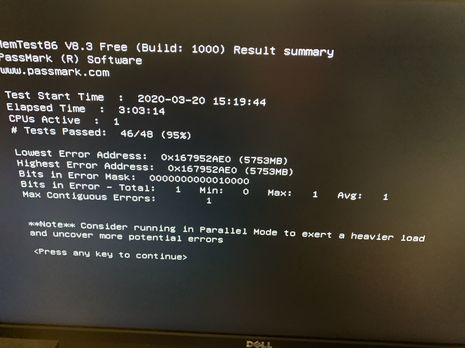 Windows 10 - Explorer freezes - ΕπανεκκινήσειςDiS απάντησε στο θέμα του DiS topic στην ενότητα Γενικά για Η/Υ Μόλις τελείωσε το δεύτερο τεστ με τα ίδια 2 dimm πάνω μετά από πρόχειρο καθάρισμα (ίσως τους άλλαξα θέσεις μεταξύ τους κατά λάθος αν αυτό παίζει κάποιο ρόλο). Να δοκιμάσω πιο σχολαστικό καθαρισμό ; Θα έπρεπε να βγάλει ίδια σφάλματα με το πρώτο τεστ αν δεν έφταιφε η σκόνη ;