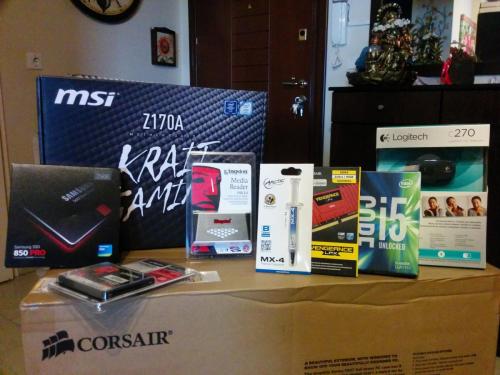 Έκλεισε λοιπόν και αυτός ο κύκλος αναβάθμισης... Με την rog swift και την gtx970 που ήρθαν πριν δυο βδομάδες και τα υπόλοιπα όπως φαίνονται στην φώτο προχθές. Σήμερα παρέλαβα και την H110i GTX, οπότε και στήθηκε ο υπολογιστής... Το μόνο που έμεινε τώρα είναι μία δεύτερη 970 να πάρω στο άμεσο μέλλον. Το νέο σύστημα λοιπόν περιλαμβάνει: Οθόνη: ASUS ROG Swift pg278q Case: Corsair 760T (Ένα μεγάλο ευχαριστώ για το review της karmen1983 που έπαιξε σημαντικό ρόλο στην απόφαση μου) Μ/Β: MSI Z170A Krait Gaming CPU: Intel Core i5 6600K GPU: MSI GTX970 Gaming 4G W/C: Corsair H110i GTX RAM: Corsair Vengeance 16GB (2X8GB) DDR4-3000MHz PSU: CoolerMaster Silent Pro 850Watt Modular Δίσκοι: Samsung SSD 850 Pro 256GB OCZ Agility 3 SSD 240GB Δύο Western Digital HDD 1TB αποθήκες External Western Digital 1TB USB3 Webcam: Logitech C270 Οθόνη ελέγχου ανεμιστήρων Aerocool Touch-2000 Ξανά μετά από μια πενταετία τώρα γιατί από εδώ και πέρα οποιαδήποτε κίνηση θα είναι αιτία διαζυγίου...