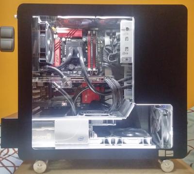 1η μου προσπάθεια σε υδρόψυξη με κύριο σκοπό να μειώσω τις τρελές θερμοκρασίες της dcuii 290χ, που είχε απόλυτη επιτυχία. το κουτί έχει αλλάξει λίγο εσωτερική εμφάνιση από τότε που στήθηκε η υδρόψυξη αλλά το loop είναι ίδιο.