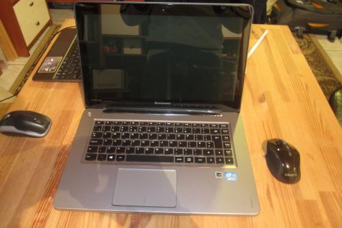 [ame=http://www.amazon.co.uk/Lenovo-IdeaPad-14-inch-Touchscreen-Ultrabook/dp/B00F93MB7I/ref=sr_1_1?ie=UTF8&qid=1390767150&sr=8-1&keywords=lenovo+u410]Lenovo U410[/ame] + [ame=http://www.amazon.co.uk/Gigabyte-M7700B-Compact-Bluetooth-Laptop/dp/B0094GX8HI/ref=sr_1_2?ie=UTF8&qid=1390767192&sr=8-2&keywords=gigabyte+7700b]Gigabyte 7700B[/ame] Απο πίσω φαίνεται και το Asus TF600TG που ήταν δώρο για τη μητέρα μου!