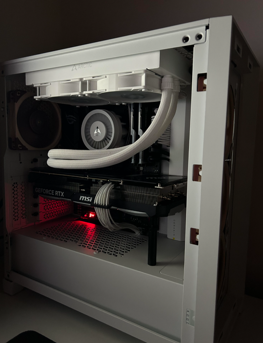 Είναι kinda beta το build ακόμα και θέλει αρκετές πινελιές. Τους AF120 που είναι αρκετά premim σαν αίσθηση τους σουταρα χωρίς να πάρουν ρευμα ποτέ, μαζί με τους 2 controller τους. Όποιος θέλει υπάρχουν σε τιμή ευκαιρίας. Μένει να αντικαταστήσω και τους ανεμιστήρες της arctic αλλά μου μένει 1 σκατουλί και 2 μαύροι. Ήθελα τους μαύρους pull ώστε να μη φαίνονται αλλά κατεβαίνει πολύ το ψυγείο και δε χωράνε οι σωλήνες που ακόμα και έτσι πάλι πρόβλημα είναι. Push, μαύρους νομίζω θα είναι too much μαύρο. Ζητάει άσπρο mobo το κουτί αλλά τώρα δεν έχει νόημα να αλλάζω ΑΜ4 σε ΑΜ4 μητρική. Ασε που δεν υπάρχουν διαθέσιμες και άσπρες μητρικές της προκοπής.
