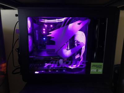 Το όνομα "Νηστίσιμο" είναι λόγο της εποχής και επειδή δεν μπήκαν πάνω τα πιο high-end κομμάτια σε hardware. Ξεκινάμε με το hardware: Μητρική: Gigabyte Z270MX-Gaming 5 Κάρτα γραφικών: Gigabyte GTX 1060 3GB Επεξεργαστής: Intel Core i5 7600K Μνήμες: Corsair Vengeance με το nickname μου. Kουτί: Corsair Carbide Air 240 http://www.corsair.com/en-us/carbide-series-air-240-high-airflow-micro-atx-and-mini-itx-pc-case AIO: Corsair H100i http://www.corsair.com/en-us/hydro-series-h100i-extreme-performance-liquid-cpu-cooler PSU: Corsair RM 550X http://www.corsair.com/en-eu/rmx-series-rm550x-550-watt-80-plus-gold-certified-fully-modular-psu-kr M.2: Ένας Samsung, δεν έχω ιδέα τι είναι. To PC το έστησα παρέα με τον @LevelOne οπότε τον ευχαριστώ πολύ. Μην περιμένετε κάποιο extreme build με mods περίεργα κλπ. Ο σκοπός ήταν να βάλουμε όλα τα παραπάνω μαζί συμαζεμένα. Η αρχή έγινε με το βάψιμο με plastidip στις γρίλιες του κουτιού. Μετά από 3-4 χέρια βγήκε κάπως έτσι. Η συνέχεια έγινε με το να μπει όλο το hardware στο κουτί και φυσικά να δοκιμαστεί ότι λειτουργεί ok. Οι 4 ανεμιστήρες του ψυγείου καθώς και οι 2 στο πλάι αλλά και ο ένας που τελικά χώρεσε στην οροφή αλλάχτηκαν με λευκούς Aerocool ώστε να είναι όλοι ίδιοι και να ταιριάζουν με το black n' white theme. Για τον ίδιο ακριβώς λόγο αγοράστηκε και το sleeved kit της Phanteks και αυτό σε λευκό. To συγκεκριμένο κουτί μοιάζει να είναι ιδανικό για μικρο-μεσαία builds γιατί χωράει χωρίς κόπο διπλό ψυγείο και στο πίσω μέρος έχει άπλετο χώρο για να κρυφτούν τα καλώδια. Μιας και η μητρική έχει υποδοχή για να διαχειρίζεται ledoταινία δεν έλεγε να χάσουμε αυτή την ευκαιρία To θέμα όμως ήταν πως θα κρυφτούν τα leds όσο πιο πολύ γίνεται. Για τον σκοπό αυτό χρησιμοποιήθηκε μια πλαστική γωνιά από τα Leroy Merlin που έρχεται σε μαύρο χρώμα. Το Π που σχηματίστηκε βιδώθηκε στην άκρη των ανεμιστήρων του ψυγείου και οι άλλες πλευρές κόλλησαν με ταινία διπλής όψεως στο κουτί. Στο πάνω μέρος όμως χωρούσαν 2 σειρές από ledoταινία όμως ήθελε λίγο ζόρι... Η ledoταινία είναι RGBW δηλαδή έχει και λευκό και η μητρική μπορεί και το διαχειρίζεται και αυτό. Θα μιλήσουμε για το μπροστά παράθυρο αργότερα αλλά πρώτα ας πάμε στο πίσω. Ντύθηκε με αυτοκόλλητο από stickerbomb και σιγά σιγά με ζεστό αέρα και υπομονή ήρθε εκεί που έπρεπε. Και κάπως έτσι έμεινε το PC για 2-3 εβδομάδες περιμένοντας το μπροστά παράθυρο για να τελειώσει. Γυαλί με αμμοβολή. Μέσω του προγράμματος της μητρικής για τα leds και την ledoταινία μπορεί κάνείς να κάνει 100άδες συνδυασμούς εμένα όσον αφορά τα χρώματα μου αρέσουν τα παρακάτω και συνήθως το βάζω να αναβοσβήνουν με τον ρυθμό της μουσικής. Το σύστημα παίζει μόνιμα σε αυτό το χρώμα πλέον και συνολικά φαίνεται όπως στην παρακάτω εικόνα. Γενικά, το σύστημα είναι πολύ ήσυχο και στους ανεμιστήρες η μοναδική ρύθμιση που έκανα είναι να γυρνάνε στις 800 στροφές όλοι μέχρι ο επεξεργαστής να πάει στους 70C. Από εκεί και πάνω όλοι στο full speed. Bέβαια, στους 70C πάει μόνο σε 100% ΑVX stressing και μόνο. Τέλος, όσον αφορά τις ρυθμίσεις στα ενδότερα έχουμε 5G stable και XMP μιας και το PC πρέπει να μείνει χωρίς προβλήματα γιατί θα περάσει στην αδερφή μου. Dat is all!