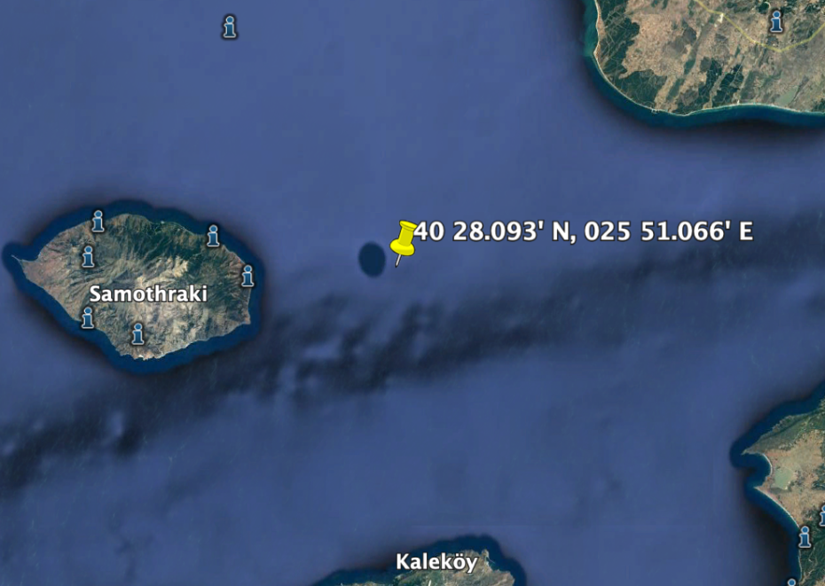 Από το βίντεο είναι οι συντεταγμένες. Εκεί που είναι το μαύρο στίγμα είναι άλλο ένα νησάκι,αλλα το google earth δεν το εμφανιζει.