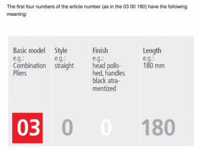 Ο πρώτος αριθμός αναφέρεται στο είδος του εργαλείου, ο δεύτερος στο τι προδιαγραφές έχει και πως έχει κατασκευαστεί και ο τρίτος είναι το μήκος. Οπότε μέσα έπεσε η karmen1983 για την διαφορά στην βαφή. Το ένα από το άλλο έχει επιπλέων επεξεργασία στην κατασκευή του για αντοχή στην σκουριά κτλ. -