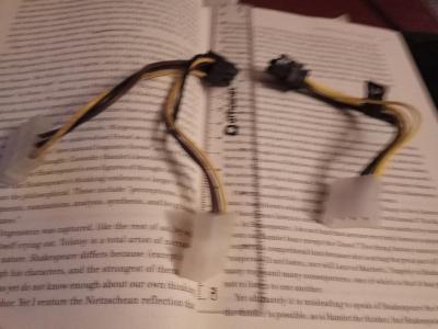 4. Παιδιά πήρα την GTX460, αλλά όταν την συνδέω το PC δεν ανοίγει καν, ούτε το post. Νέκρα. Φταίει που είναι 450Watt το PSU μου (ώστε να πάρω κάνα 530W με 25 ευρώ) ή επειδή έχω αυτά τα δύο διαφορετικά καλωδιάκια (Αυτό με 2 απολήξεις είναι το παλιό, το άλλο το πήρα από Cosmodata μόλις είδα ότι χρειάζεται 2 η κάρτα); [βλ φωτό 1 και 2] Όπως βλέπετε στη φωτό 3, από το παλιό καλωδιάκι φαίνετια να λείπει ένα πινάκι. Φταίει αυτό άραγε;