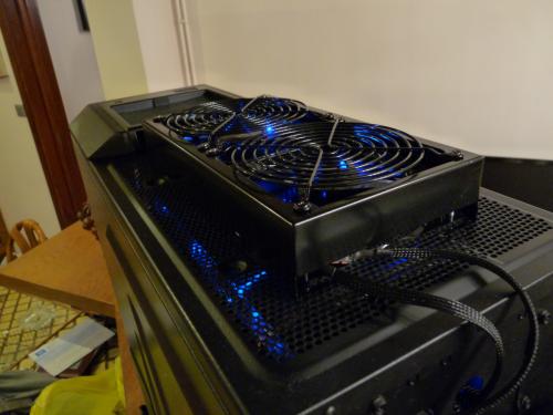 Kουτι haf932 τριπλο ψυγειο πανω με ανεμιστηρες απο μεσα προς τα εξω,μονο ψυγειο πισω και εξω απ το κουτι μιας και δεν ταιριαζε μεσα,με ανεμιστηρα να σπρωχνει εξω ,πλαινος ανεμιστηρας 22 νομιζω(μεγαλος) σπρωχνει μεσα και αλλος ενας ιδιος μπροστα στο κουτι με φορα προς τα μεσα.