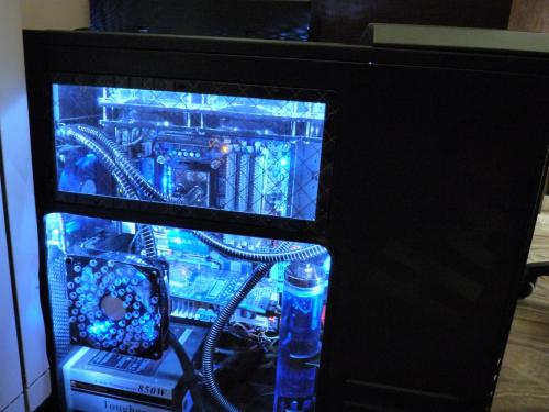 Ετσι το ξεκινησα αλλα ηταν πολυ δυσκολο να κατεβω απ τα ρακορ του ψυγειου στη αντλια μιας και το ψυγειο φτανει μεχρι την προσοψη σχεδον του κουτιου.Συν της αλλης παιζει και ενα control panel της scythe για fan και temps σε μια θεση 5.25 και αναγκαστικα βγηκε ετσι το συνολακι!