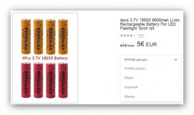 19. Βρήκα αυτή την προσφορά 18650 9900mah Li-ion ... Τέσσερις μπαταρίες, από 41€ μόνο 5€ ... Αξίζει ή είναι για πέταμα ???