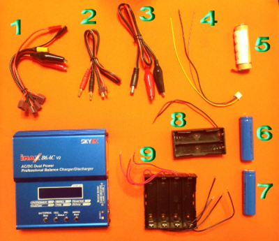 12. Ήρθε η ώρα για χρήση του iMAX B6AC ... Θέλω να φορτίσω 2 στοιχεία ... το 6 και το 7 ... - Ποιά απ' τις 2 μπαταριοθήκες πρέπει να χρησιμοποιήσω ??? Την 8 ή την 9 ??? Είναι ορατή η διαφορά τους στη συνδεσμολογία των καλωδίων ... Στην 8, η σύνδεση είναι εν σειρά, ενώ στην 9 τα στοιχεία φορτίζονται ένα ένα ... - Ποιά καλώδια να χρησιμοποιήσω ... 1, 2, 3, ή 4 ???