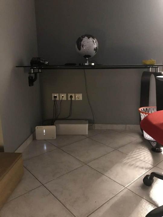 αχαχααχχα ρε Gomar χωρις να σε ξέρω νομίζω άκουσα και την φωνή σου.Νομίζω μοιάζουμε κιόλας.αχχαχαχα Στις πίσω βάσεις εκει που βίδωσα την βάση στον τοίχο έβαλα κα ιτο πολύμπριζο το άσρο στο όρθιο...ουσιαστικά έκανα εναν χώρο 13-15cm με εκείνη την ανοξείδωτη λαμαρίνα για να είναι τα καλώδια και το πολύμπριζο..Κρύφτηκαν όλες οι μπρίζες έτσι όπως το βίδωσα και απο την κάτω πλευρα στο ανάποδο έβαλα πάνω στην μία την σωλήνα (40Χ40) τύπου velcro αυτοκόλλητα(dual lock) τα έβαλα στην πλάτη απο το ro;yter και τα "κουμπώματα" του τα έβαλα στην 40Χ40...Ετσι αν σκύψω απο κάτω βλέπω τα λαμπάκια του royter...ανάμεσα στην βάση και στον τοίχο έχει μια απόσταση 5cm περίπου και απο εκεί φευγουν τα καλώδια utp/power κλπ απο το router. Το κουτί που είναι για να μπαίνει το πολύμπριζο δεν υπάρχει πλέον.Δεν χωρούσε και δεν χρειαζόταν.