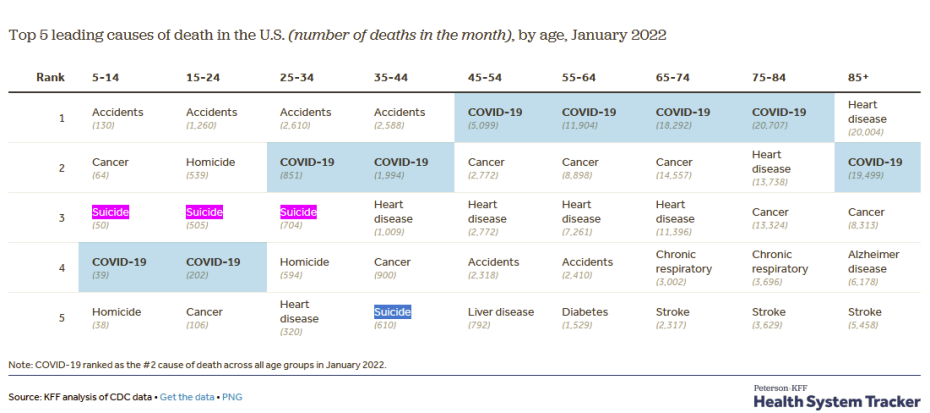 Δεν αυτοκτονώ τον κόσμο. Απλά αναφέρω τα γεγονότα και τα αναφέρω για να ξυπνήσουμε λίγο και να δούμε ότι δεν υπάρχει μόνο ένα πρόβλημα υγείας (covid) αλλά υπάρχουν και άλλα προβλήματα υγείας (π.χ. ψυχολογικά), πρέπει να δούμε σφαιρικά το θέμα της υγείας. Στην Αμερική, περισσότεροι νέοι <24 ετών πεθαίνουν από αυτοκτονίες παρά από covid. https://www.healthsystemtracker.org/brief/covid-19-leading-cause-of-death-ranking/ Emergency Department Visits for Suspected Suicide Attempts ... WWW.CDC.GOV During the COVID-19 pandemic, emergency department (ED) visits for suspected suicide attempts increased among adolescents aged... Η έρευνα δείχνει τα περιστατικά που πήγαν στην εντατική για τα οποία είχαν βάσιμες υποψίες ότι ήταν απόπειρα αυτοκτονίας. Την άνοιξη του 2020, κατέγραψαν 540 περιστατικά ανηλίκων και 646 περιστατικά ενηλίκων ανά εβδομάδα Τον χειμώνα του 2021, κατέγραψαν 1054 περιστατικά ανηλίκων 786 περιστατικά ενηλίκων ανά εβδομάδα. https://www.webmd.com/lung/news/20210210/child-suicides-rising-during-lockdown https://www.psycom.net/covid-19-suicide-rates